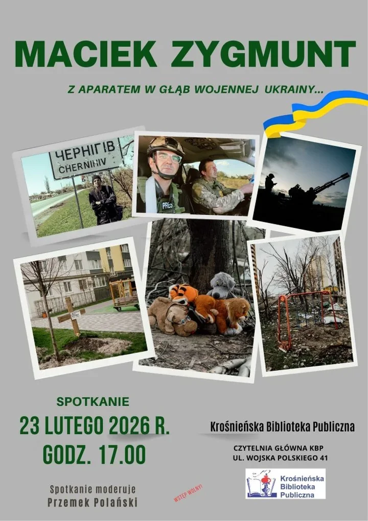 Krośnieńska Biblioteka Publiczna zaprasza do Czytelni Głównej na spotkanie z fotografem i filmowcem, który od 2022 roku dokumentuje wojnę na Ukrainie. To okazja, by usłyszeć o pracy w strefach frontowych i zobaczyć zdjęcia, które trafiają do światowych mediów, bez patosu, za to z konkretem i doświadczeniem.