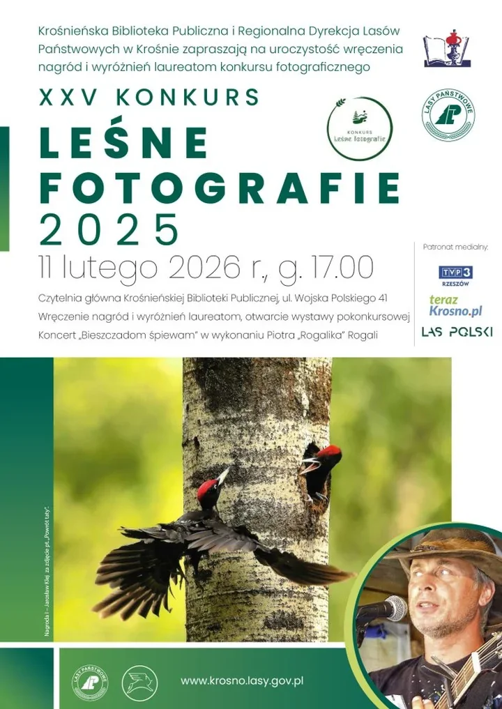 Oficjalne otwarcie i rozdanie nagród zaplanowano na 11 lutego 2026 r., o godz. 17:00, w Czytelni Głównej Krośnieńskiej Biblioteki Publicznej - ul. Wojska Polskiego 41. Po ceremonii publiczność usłyszy koncert bieszczadzkiego muzyka i przewodnika Piotra “Rogalika” Rogali - program zatytułowany “Bieszczadom śpiewam” doda wydarzeniu akustycznego ciepła i regionalnego klimatu. 🎶🌄